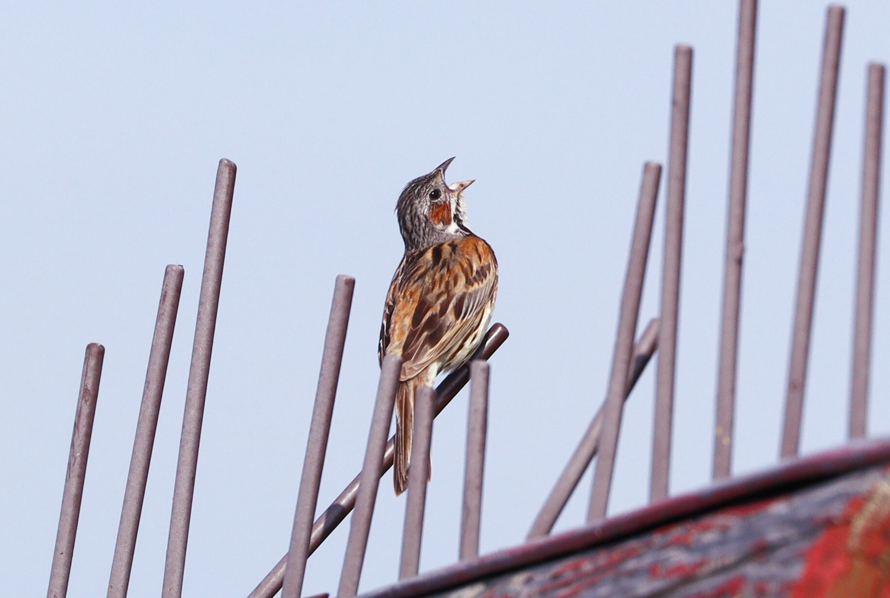 囀るホオアカ(多分。鳥の名前勉強中につきご容赦ください)。