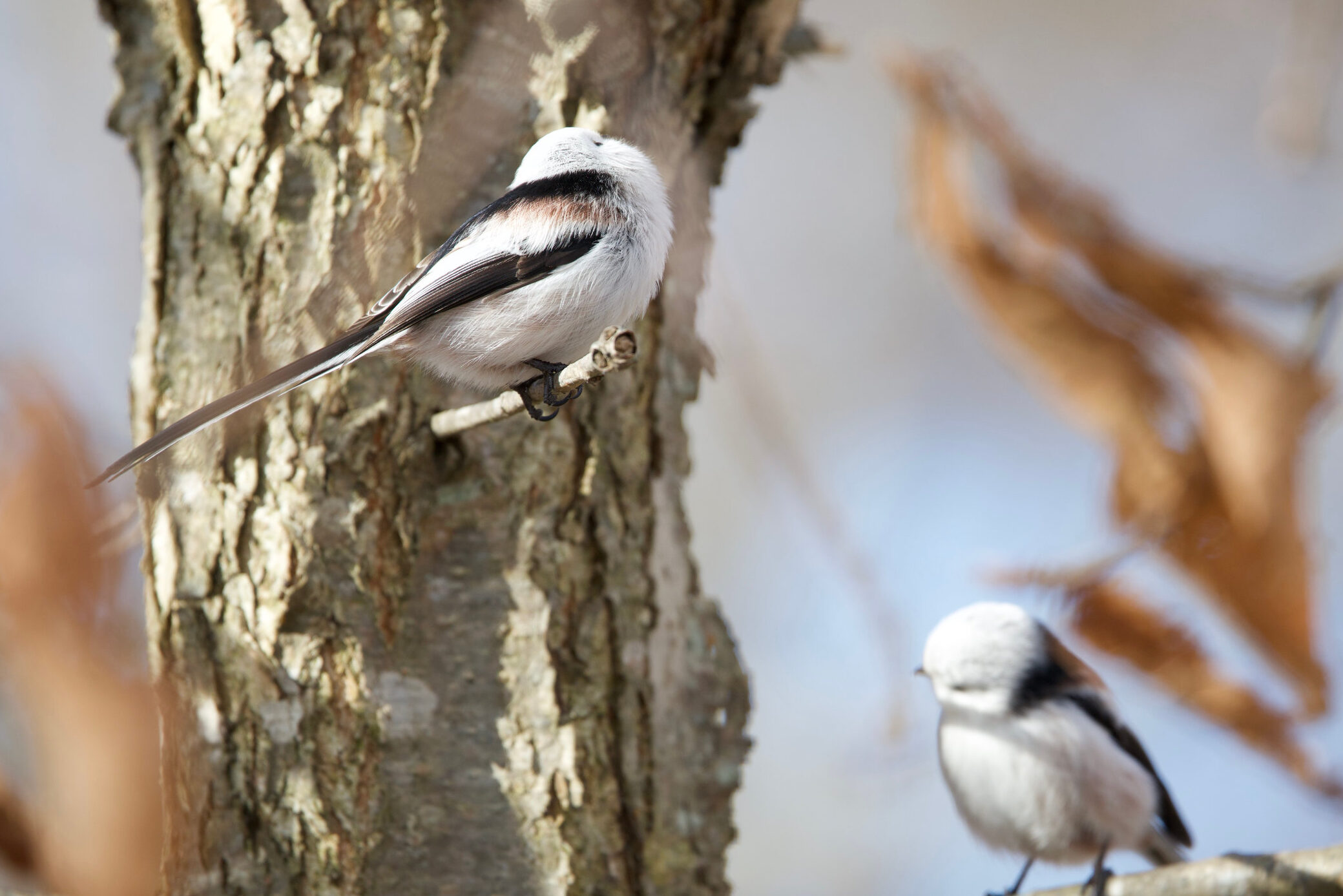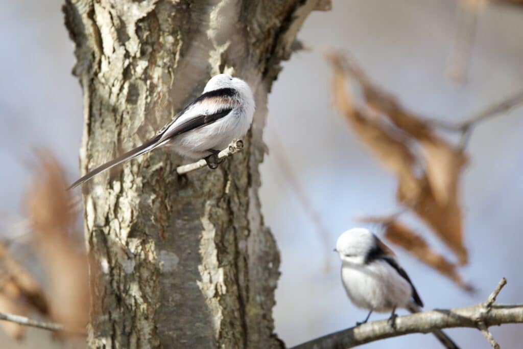 シマエナガは群れで行動するんですが、その群れは大きいものと小さいものがある。