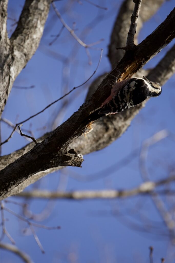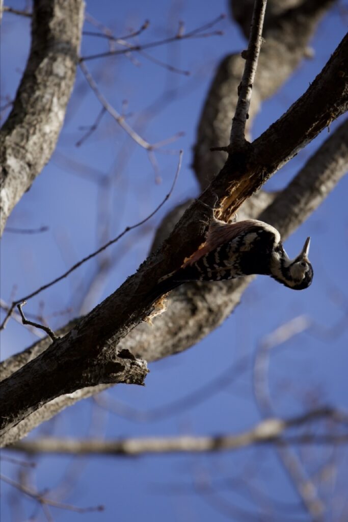 鳥の鳴き声がしない日だったから、オオアカゲラのコンコン木を突く音が、森中に響き渡ってました。