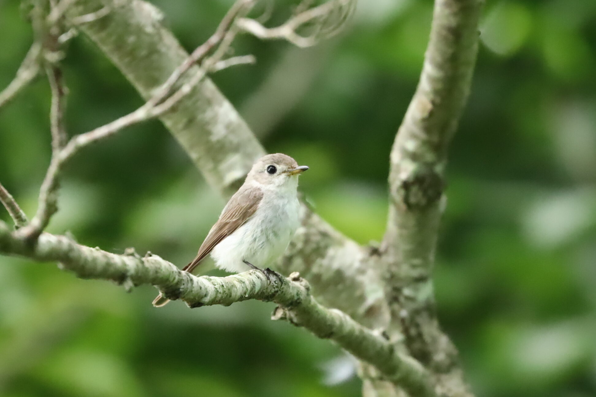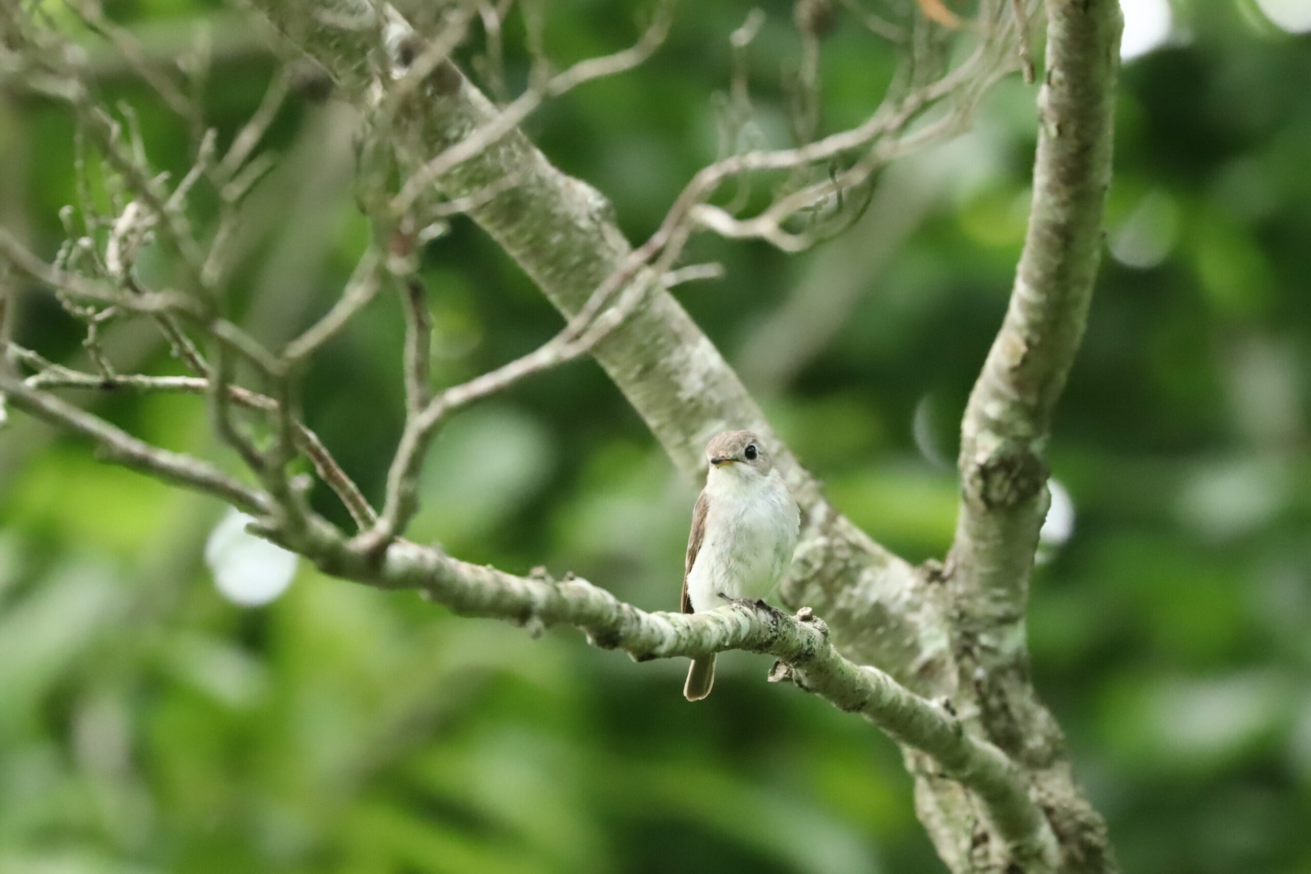 ヒタキ科の鳥だと思うのだけど、コサメビタキにも見えるし、キビタキのメスにも見える。