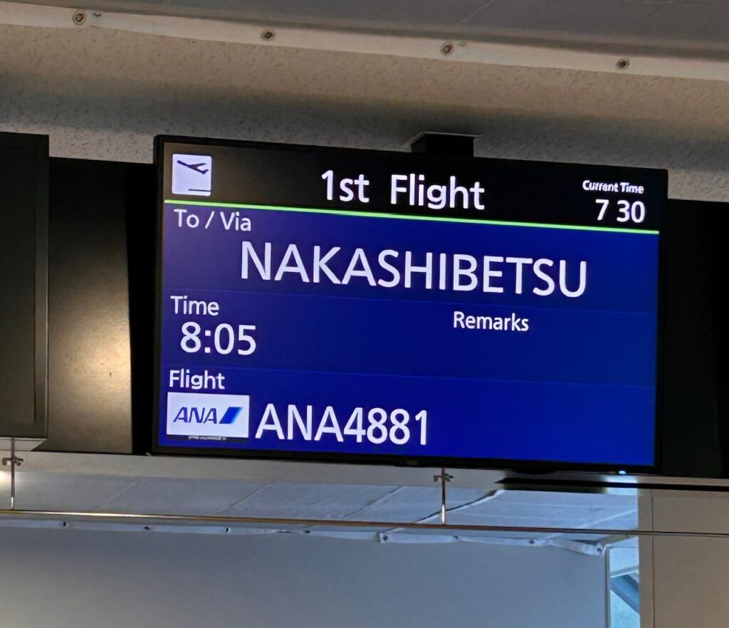 中標津空港へは、札幌からならANAもJAL(JALなら、丘珠発着となります)も運行しているのですが、現地に一番早く到着するのがANAであったため、飛行機はANAを選択。